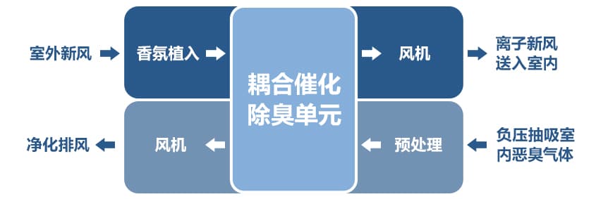 負(fù)壓新風(fēng)除臭設(shè)備采用羿藍(lán)耦合離子催化模塊+空氣賦能模塊,起到負(fù)壓新風(fēng)置換,去除臭味的效果,從而改善環(huán)境。